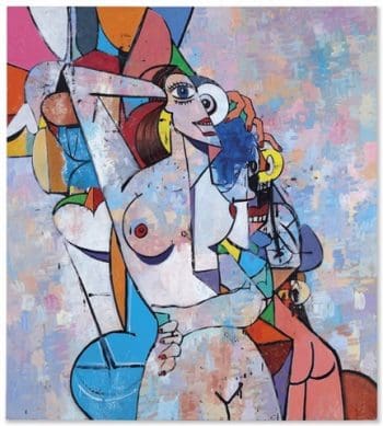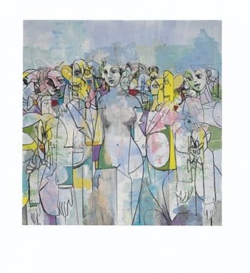 Both Warhol and Basquiat where strong artistic influences on Condo’s work at this time. However, over above these two as he emerged as a figurative painter, was and still is, Picasso. A key difference is that unlike Picasso who painted figurative images of real people and things, Condo’s images all emerge from his imagination. In an interview with the Guardian in 2013 he is quoted as saying ‘I describe what I do as Psychological Cubism. Picasso paints the violin from four different perspectives at one moment. I do the same with psychological states; four of them can occur simultaneously. Like glimpsing a bus with one passenger howling over a joke they’re hearing down the phone, someone else asleep, someone else crying – I’ll put them all in one face”.