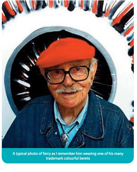 I first met Terry in the 1980’s during my early days at Christie’s, I would see him either at our auction preview ‘Drinks’ or at his shows at the Whitford gallery just around the corner in Duke Street. He was always full of fun and told great stories such as this one from his days working in the 1950’s as an assistant to the sculptor Barbara Hepworth in her studios in St Ives … Hepworth was convinced her clients would not buy her work if they knew she didn’t make everything herself, so she was understandably nervous whenever prospective clients came to visit her studios. Terry told me that whenever visits took place he and the other assistants all went down to the pub until the coast was clear. One particular day important clients were coming so Terry and the other assistants made themselves scarce in the pub as usual, expecting on their return to find the visitors long gone. However as soon they arrived back Barbara told them to hide, the clients has arrived late and were still in the house and would be coming up the path any minute now. The assistants all managed to quickly find a hiding place and Barbara began showing the clients around the garden and studio. Terry was well hidden behind a bushy tree, however he could feel all the beer was beginning to well up inside him and very soon he was going to have to pee ! He hung on and on but with the tour continuing he could hold out no longer. He couldn’t risk nipping to the loo so performed the task from his bushy hiding place thinking he had got away with it. However unknown to Terry he had unwittingly created a small river which was running swiftly down the path towards Barbara and her prospective clients, Barbara noticed the stream but luckily her clients were too busy enjoying their tour to notice and Terry got an ‘earful’ from the boss after they had gone.