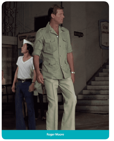 When we look at the clothes that Bond sports, there has always been that sartorial elegance with Bond, with Daniel Craig wearing a symphony of Tom Ford attire, with accoutrements by Sunspel, Orlebar Brown and many others but, for me nothing beats Roger Moore in the Safari Suit though, capturing a moment when being a secret agent required a pair of flared trousers, and preferably with a silk cravat.