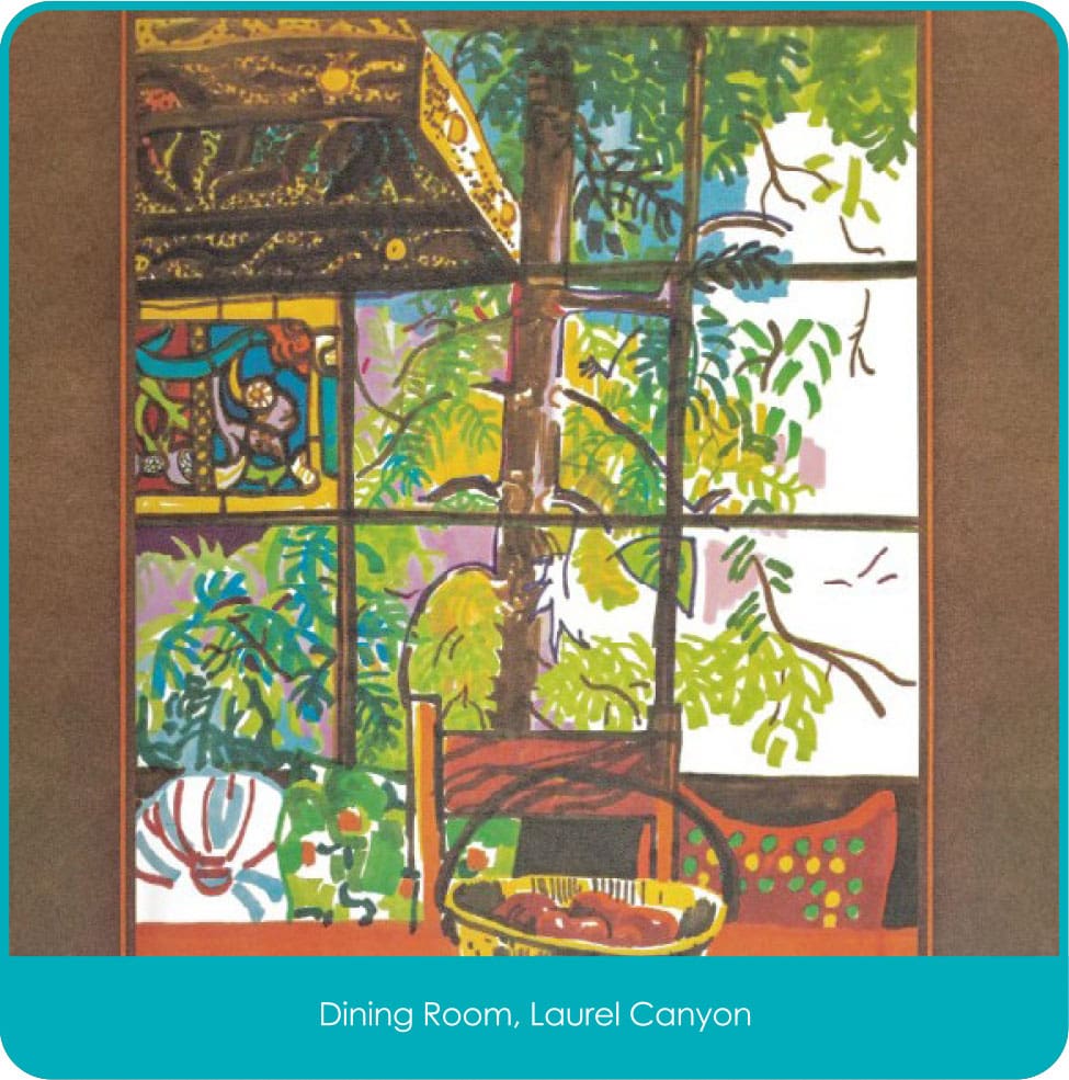 Joni started painted extensively in the ’60s and has never stopped since, except for a few brief, ill-advised forays into photography in the 1980s. The ’60s paintings are almost exclusively portraits of those around her, often drawn from reproductions of sketchpad drawings made on the road or in recording studios. Those around her are mostly men: some of them lovers (Graham Nash, David Crosby), some friends and professional barometers (Neil Young, Bob Dylan), but for their cheery, empty impersonality, they might as well be strangers.