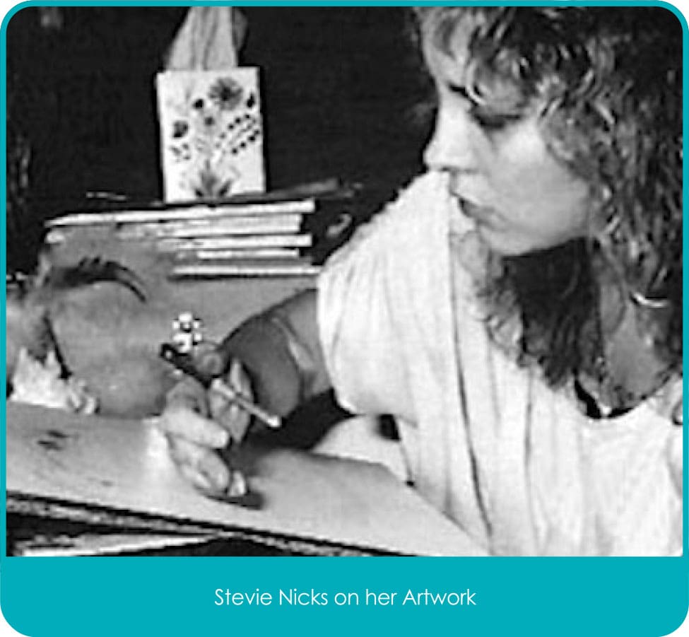 Stevie Nicks, the evocative lead singer of the folk rock band Fleetwood Mac, has painted throughout her long career, but yet she says she doesn’t really think of herself as a painter. This modesty belies a body of work which almost perfectly reflects the essence of her music, and evokes the bucolic feel of the Pre-Raphaelite Brotherhood. Her paintings are at once folkish and deeply biblical.