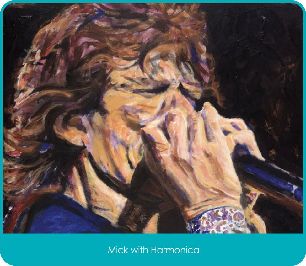 Having received formal art training at Ealing College of Art, Ronnie has been a prolific painter since his teens. He has described painting as being like therapy and would create portraits of figures he admired. Elvis Presley, Jimi Hendrix and fellow band member Mick Jagger are just a few of those he has painted, along with other musicians, friends and family.