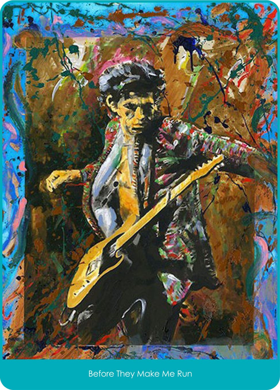For Ronnie, music and art have always gone hand-in-hand, and the intensity that he brings to the guitar translates onto canvas and paper with rhythmic line and vibrant colour. Ronnie’s paintings are a record of his many talents and loves. One of the things he most enjoys is to paint the views from his farm in County Kildare Ireland and the horses he keeps in stables there, allowing him time to take time out from both the media attention that follows him everywhere and also work on his future projects, both with the Rolling Stones and other musicians, in a more secluded atmosphere.