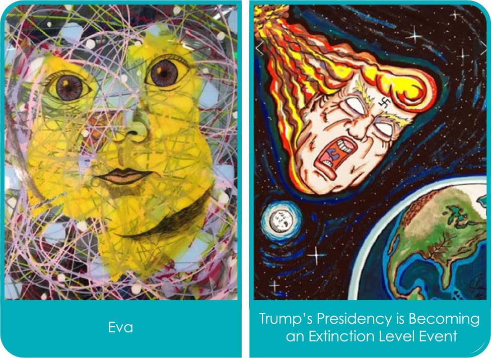 Jim Carrey’s comedy and movie background is already legendary, but most people don’t realise that he is also an artist with a number of public exhibitions under his belt! Carrey has been drawing and painting since childhood, and not surprisingly considering his sharp wit and edgy sense of humour, his art is highly political and satirical; criticising and digging into the woes of modern-day America. Carrey is both a painter, sculptor and print maker.