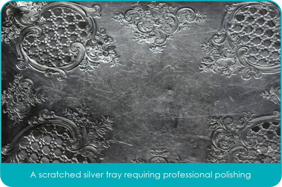 Given that silver is a soft metal, you also need to be careful not to bend it or make it vulnerable to dents. For example, it is common to see legs of sauce boats pushed in. Splits can also occur around the edges of pieces so rule number two is to always handle your silver ware with care, remembering that the lighter and thinner it is the more vulnerable it will be to damage.