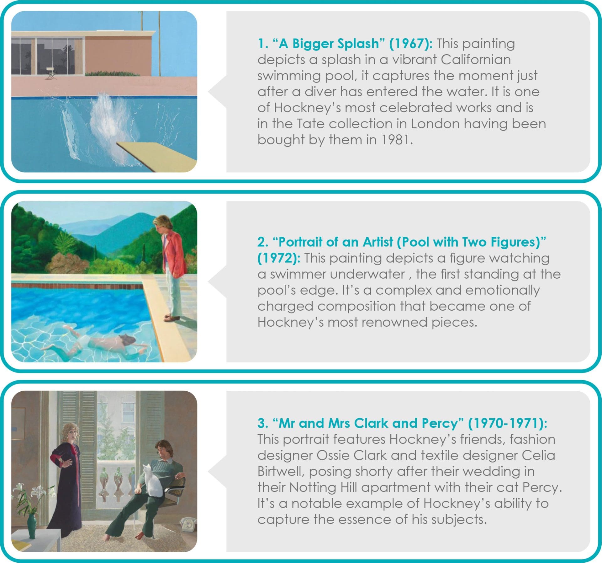 David Hockney is one of my all time favourite British artists and throughout his career he has created many truly iconic paintings. While it’s subjective to determine the “most famous” ones, here are some of his most notable works: