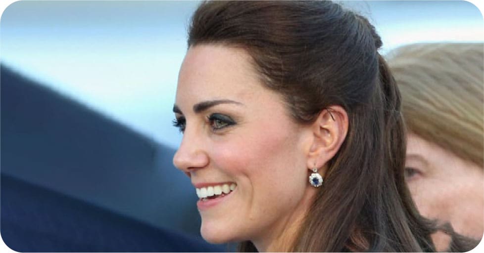 To match Catherine’s engagement ring, the Duke of Cambridge gifted a pair of sapphire and diamond cluster earrings from his mother’s personal collection. The Princess simply had them altered to be drops rather than clips.