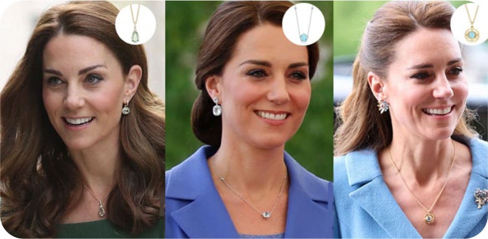 The Princess has jewellery for every occasion, as can be expected. Her everyday jewels include the above by designer jewellers, but Catherine also favours high street jewellery, such as the below by Accesorize.