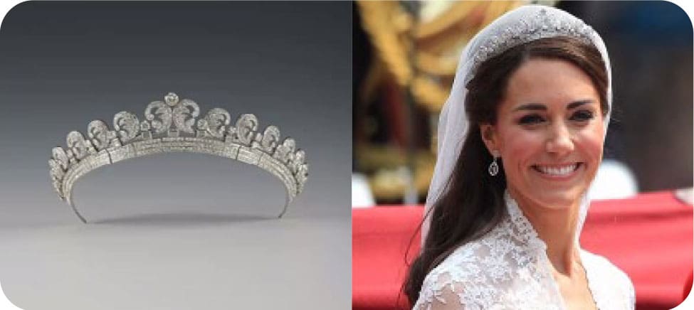 The tiara, called the Lover’s Knot tiara, was lent to Diana as seen below, then went back to the Queen, and upon her passing, is now worn exclusively by Princess Catherine.