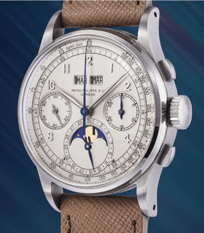 Described as ‘genre-defining’ and a ‘unicorn’ of the watch world, this piece sold at Phillips Auctions. Why the record breaking price? This particular watch represented the rarest variation of the world’s first perpetual calendar chronograph wristwatch, as the first of only four steel versions produced.